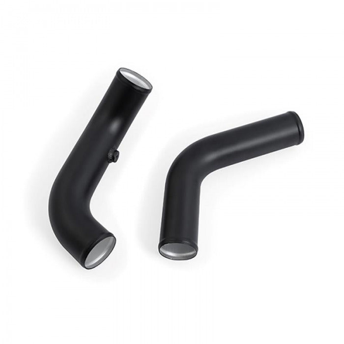 This Mishimoto performance intercooler kit features a high-quality bar-and-plate intercooler and mandrel-bent aluminium intercooler piping for a blend of durability and performance. Our intercooler’s bar-and-plate core is precision TIG-welded to durable cast-aluminium end tanks. This design gives the intercooler increased durability and resistance to heat and pressure. The Mishimoto intercooler also boasts a 146% increase in core volume and 159% increase in fin surface area over the stock intercooler for even more efficient cooling. Our intercooler pipes are mandrel bent to eliminate harsh bends that impede airflow and rob performance. The aluminium construction means that these pipes will also outlast the factory rubber and plastic hoses. This intercooler kit is available with a stealth black or sleek silver intercooler and micro-wrinkle black powder coated or polished pipes to suit any look.